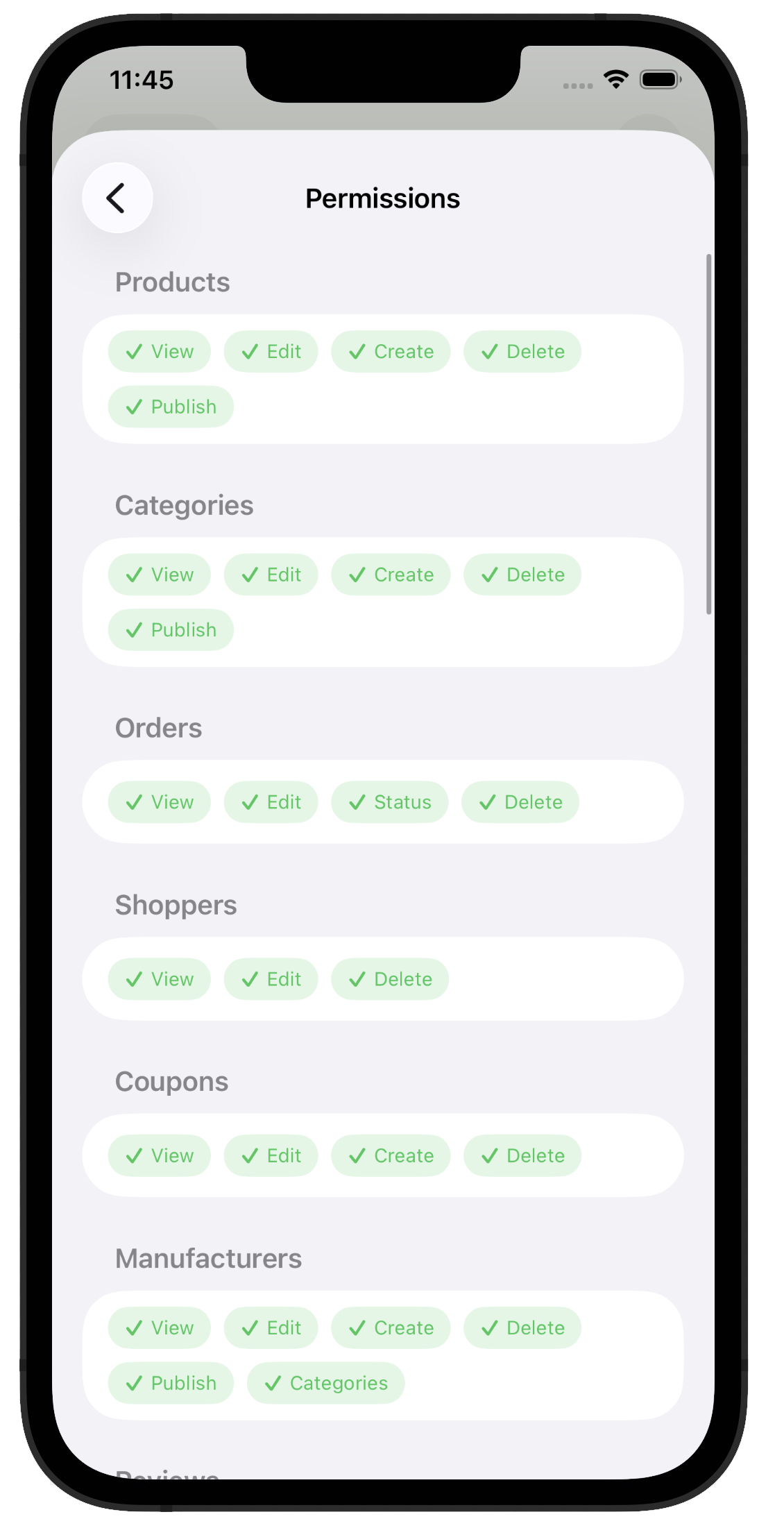 Shoppers, Coupons, Inventory, Reviews, Settings & more
